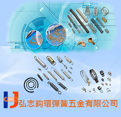 弘志鈎環五金有限公司_專業製造工廠,採用最先進多軸成型機,生產各種曲線鉤環、鉤扣、S鉤、衣物夾子、不銹鋼夾子、吊鉤、扣環、管束、扣環(扣具)管束、鈎環、插梢、彈片夾簧、電子彈片、線材成型、板材彈片、板材、彈片,擁有高速CNC電腦機械設備_專製精密彈簧 (精密彈簧線徑從0.05mm起,外徑從0.23mm起)、3C精密彈簧、探針彈簧、彈簧、特殊彈簧、電池彈簧、壓縮彈簧、拉伸彈簧、扭力彈簧、扭轉彈簧…等製品(備有電腦測試彈力),適用於電子業、家電業、汽車業、機車業、自行車業、工具業、機械業…等各行業五金產品。